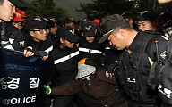 [포토]밀양 송전탑 공사 재개… 주민 끌어내는 여경들