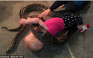 [포토] 버마왕뱀과 뒹굴며 노는 아기 "보는사람이 심장떨려"