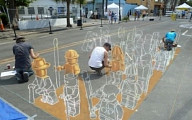 '분필 낙서의 위엄', 3D 방불케 한 예술 작품