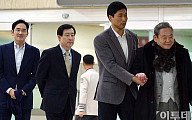 [포토]이건희 삼성전자 회장, 딸 손잡고 신년하례식 입장