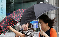 [포토]서울 호우주의보, 비바람에 우산을 쓸수가 없어