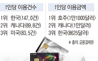 한국, 1인당 신용카드 이용건수 ‘세계 최고’