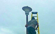 아저씨의 무리수, 가로등 향해 아슬아슬 사다리 타기