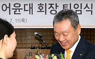 [포토]퇴임 꽃다발 받는 어윤대 KB금융지주 회장