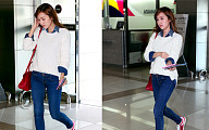 제시카 공항패션 ‘청바지+흰 티’, 심플함으로 승부