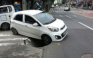 대낮 울산 싱크홀, 멀쩡하던 소형차 '폭삭'…재난영화 같은 일이!