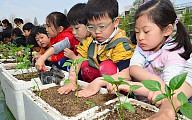 [포토] 어린이에게 화분 나눠주는 대상(주) 명형섭 사장