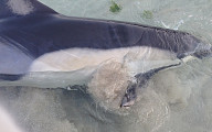 [포토]제주 해수욕장 모래에 갇힌 돌고래 '허우적~'