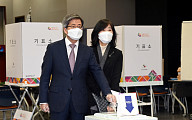 김명수 대법원장, 배우자 함께 투표…‘사전투표 논란’ 즉답 피해