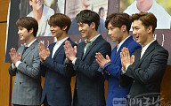 [포토] 규현·민호·종현·성규·수호 '누가 제일 잘생겼나?' ('두근두근 인도' 기자간담회)