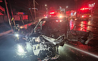 빗길 미끄러진 전기차 화재…운전자 사망