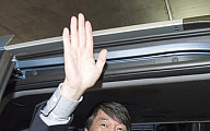 [포토]차량 탑승해 손 흔드는 안철수 교수