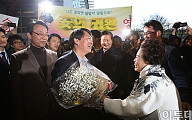 [포토]지지자에게 안개 꽃다발 받는 안철수 교수