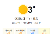 [오늘의 날씨] 대체로 맑고, 일부지역 눈