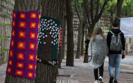 [포토] '쌀쌀해진 날씨, 뜨개옷 입은 가로수'