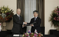 한국-호주 중앙은행 총재, 통화스왑 계약 후 악수