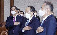 [포토] 국민의례하는 한덕수 총리-추경호 부총리-이상민 장관