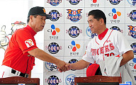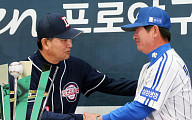 [포토]한국시리즈에서 만난 삼성-두산의 두 수장