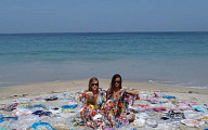 해변 청소 자매, 비키니 입고 무표정한 얼굴로…
