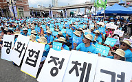 [포토]815평화통일대회, '구호 외치는 시민들'
