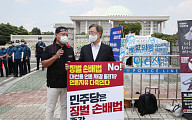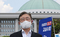 최재형 “언론중재법 철폐”… 국회 앞 1인 시위