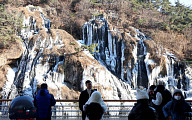 세초 한파에 얼어붙은 홍제천 인공폭포 [포토로그]