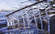 영하 10도 '맹추위'에 꽁꽁 언 한강 고드름 [포토로그]