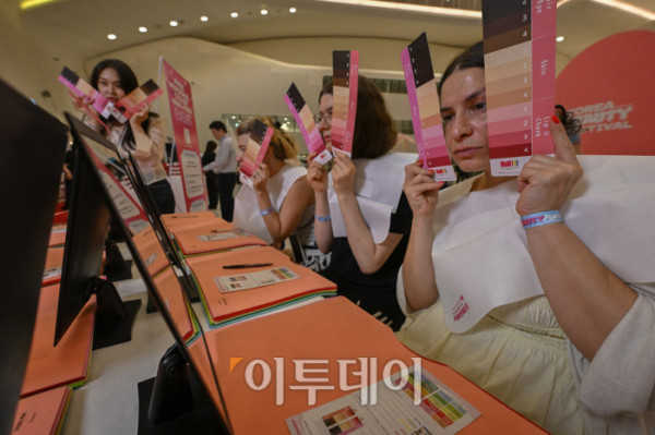 ▲19일 서울 중구 동대문디자인플라자(DDP)에서 열린 2025 코리아 뷰티페스티벌에서 외국인들이 각종 체험을 하고 있다. 뉴 미·미·미'(NEW ME·미·美)를 주제로 열린 행사는 K-뷰티로 나만의 새로운 아름다움을 찾는 여정을 소개하는 행사 취지를 담았다. 행사는 이날부터 내달 18일까지 열린다. 조현호 기자 hyunho@