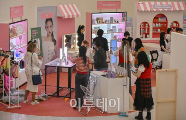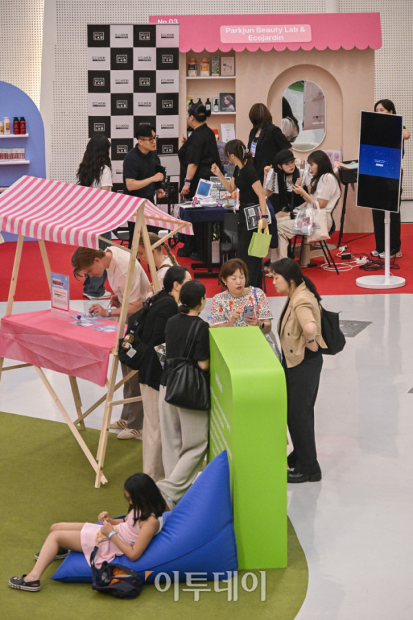 ▲19일 서울 중구 동대문디자인플라자(DDP)에서 열린 2025 코리아 뷰티페스티벌에서 외국인들이 부스를 살펴보고 있다. 뉴 미·미·미'(NEW ME·미·美)를 주제로 열린 행사는 K-뷰티로 나만의 새로운 아름다움을 찾는 여정을 소개하는 행사 취지를 담았다. 행사는 이날부터 내달 18일까지 열린다. 조현호 기자 hyunho@